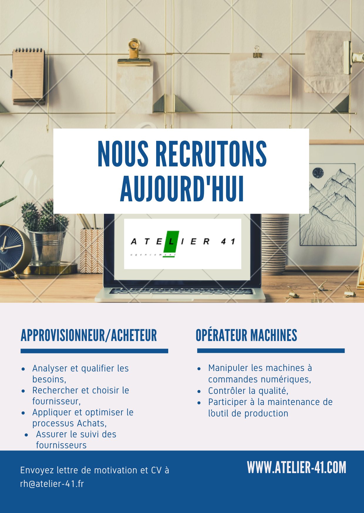 ATELIER 41 RECRUTE UN APPROVISIONNEUR/ACHETEUR ET UN OPĂRATEUR MACHINES