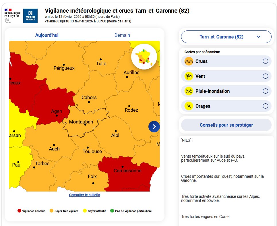 VIGILANCE MÉTÉOROLOGIQUE ET CRUES TARN-ET-GARONNE (82)