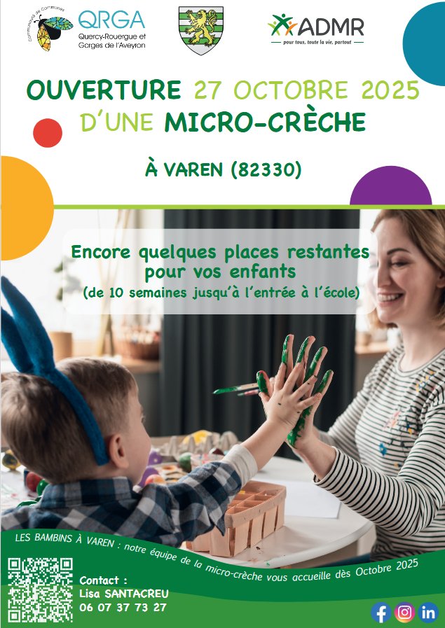 Nous sommes heureux de vous annoncer l'ouverture de la Micro crèche sur la Commune de Varen " Les Bambins à Varen" le 27 Octobre 2025.