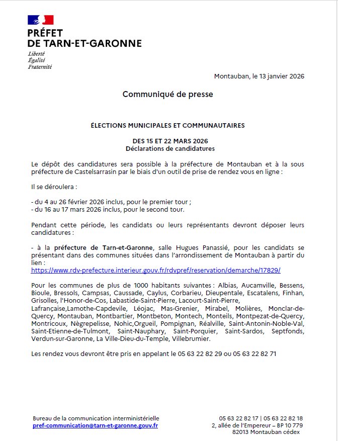 ÉLECTIONS MUNICIPALES ET COMMUNAUTAIRES 2026 - DÉPÔT DE CANDIDATURE ET PRISE DE RENDEZ VOUS
