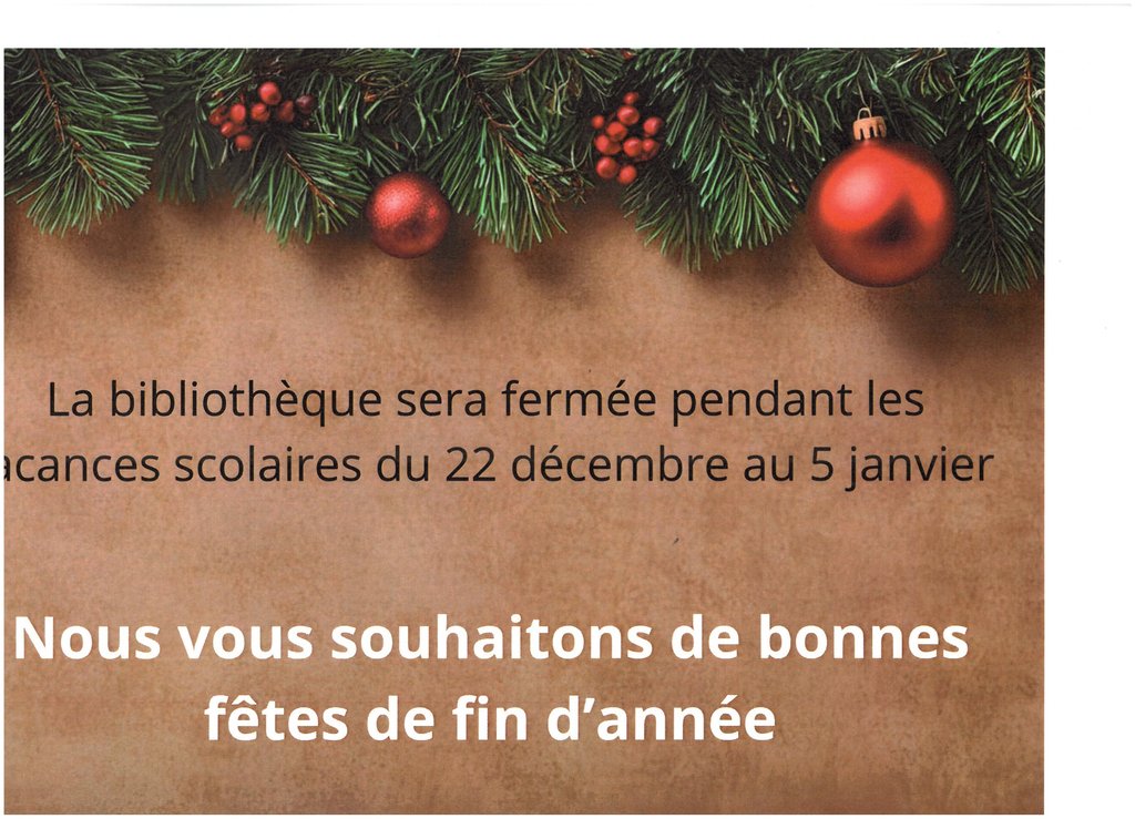 La bibliothèque sera fermée pendant les vacances scolaires du 22 décembre au 5 janvier.