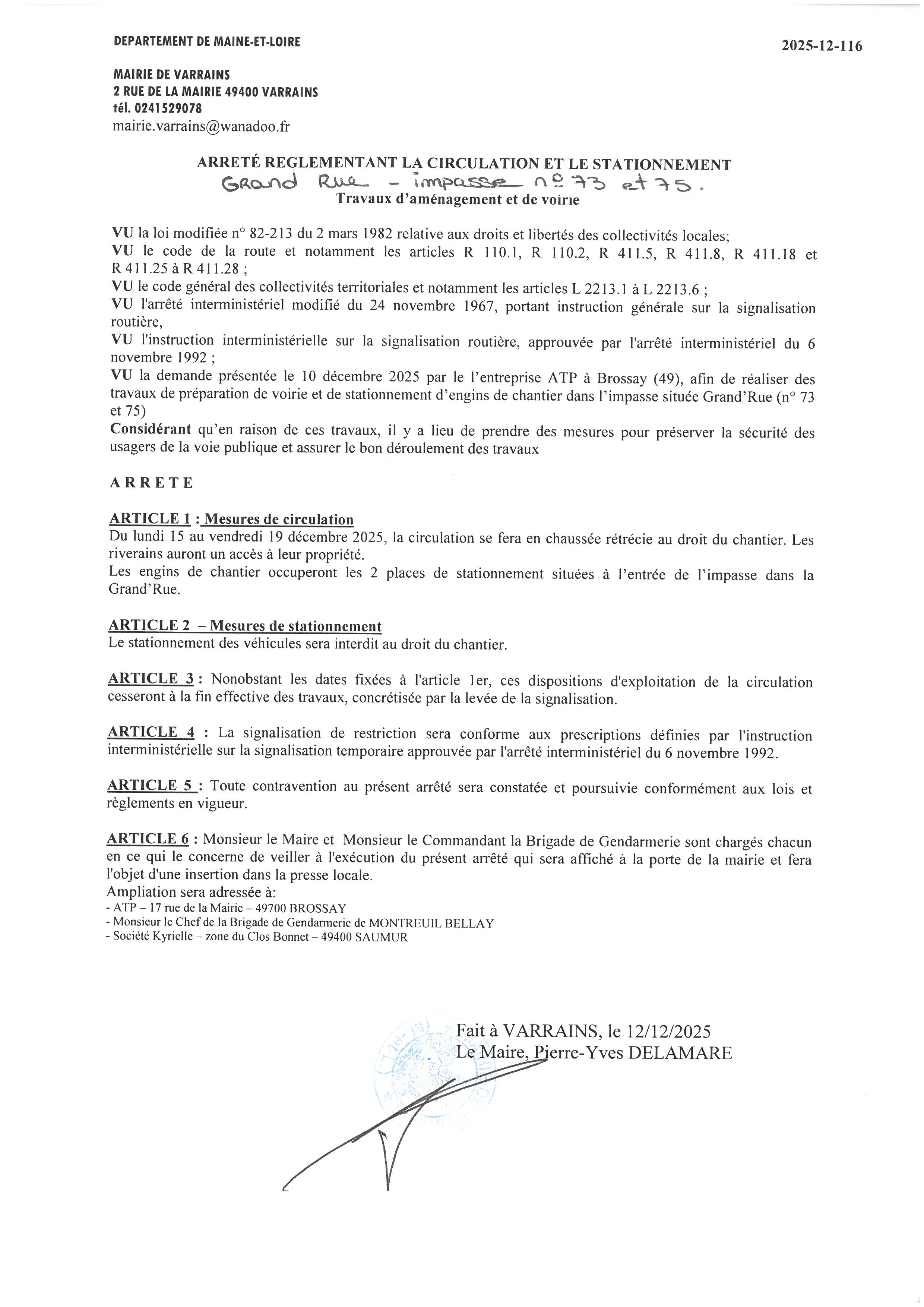 ARRÊTÉ DE CIRCULATION GRANDE RUE