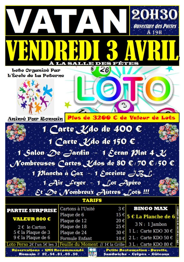 L’école de La Poterne organise son grand loto vendredi 3 avril 2026 à la salle des fêtes.