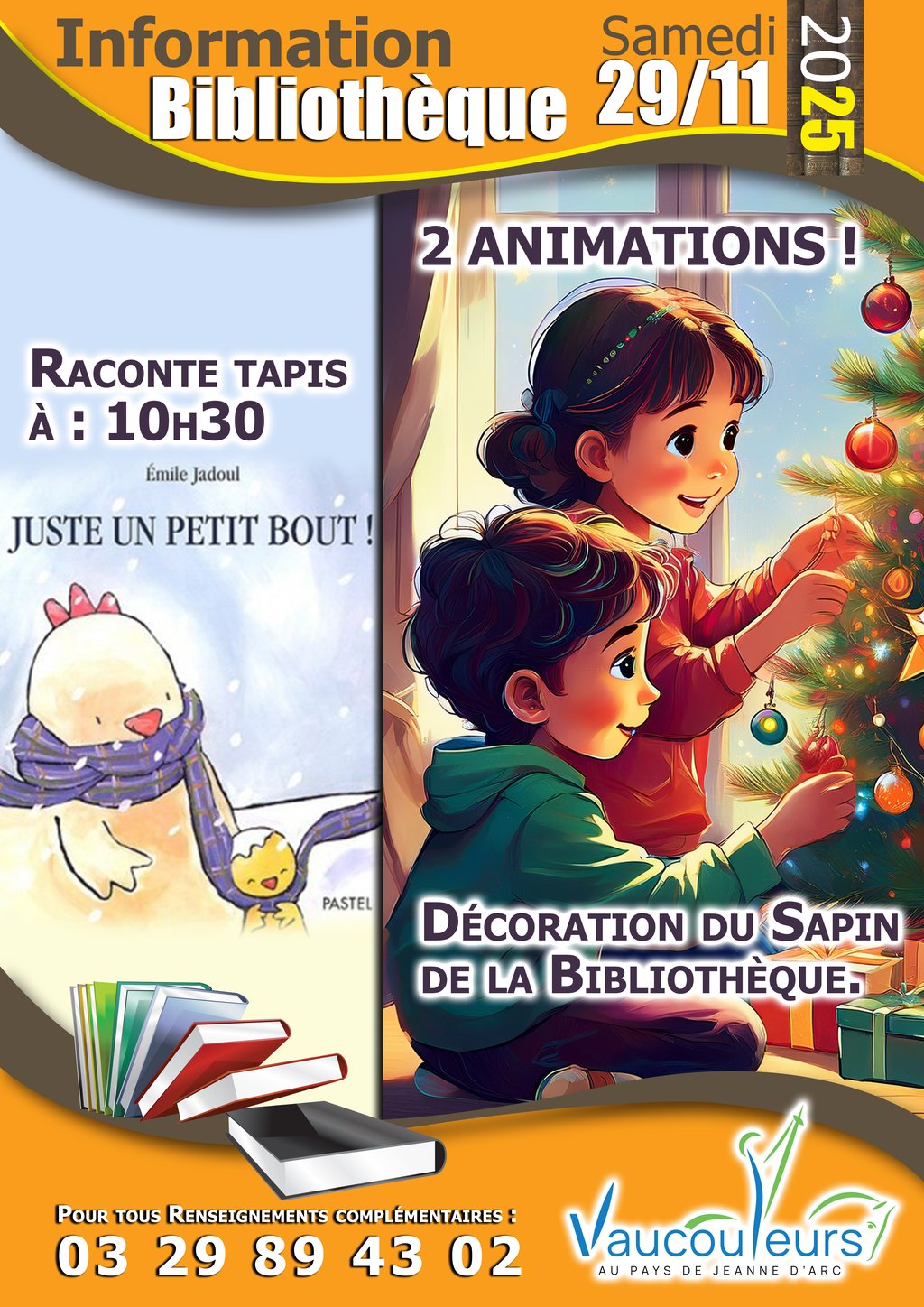 📚✨ Deux animations à ne pas manquer à la bibliothèque samedi 29 novembre 2025 ! ✨📚
