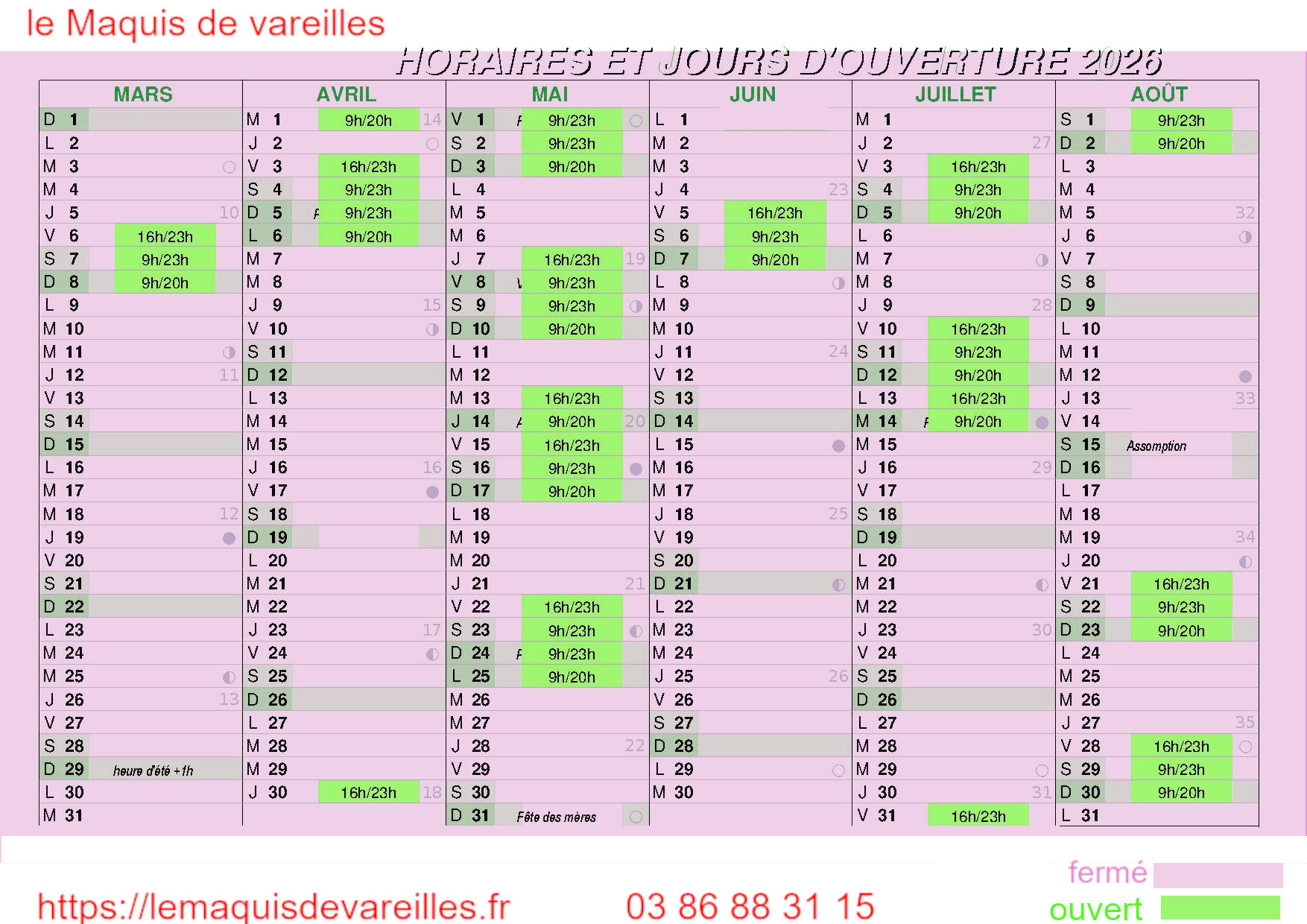 et horaires d'ouverture.