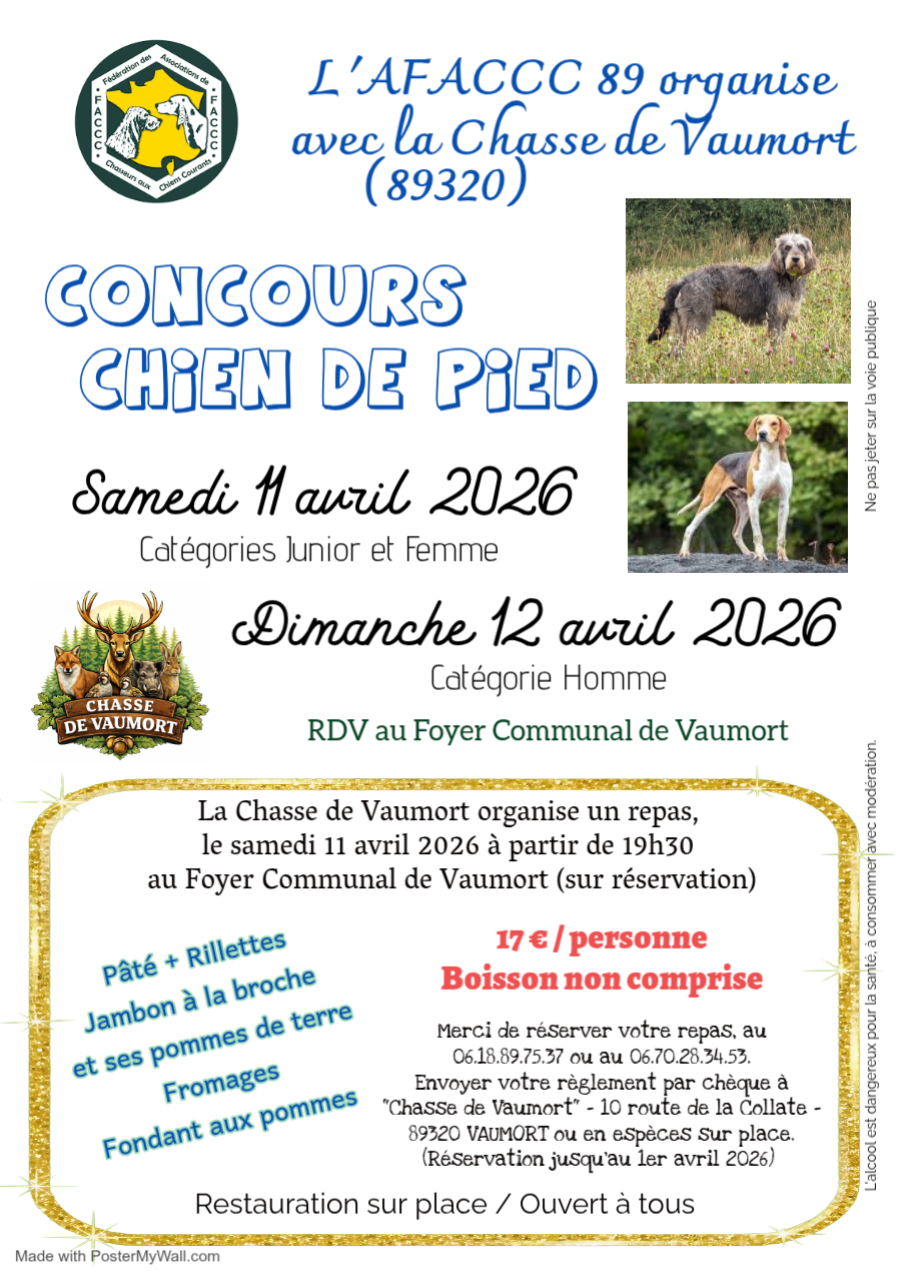 Concours de chien de pied organisé sur la commune de Vaumort, le week-end du 11 avril 2026.