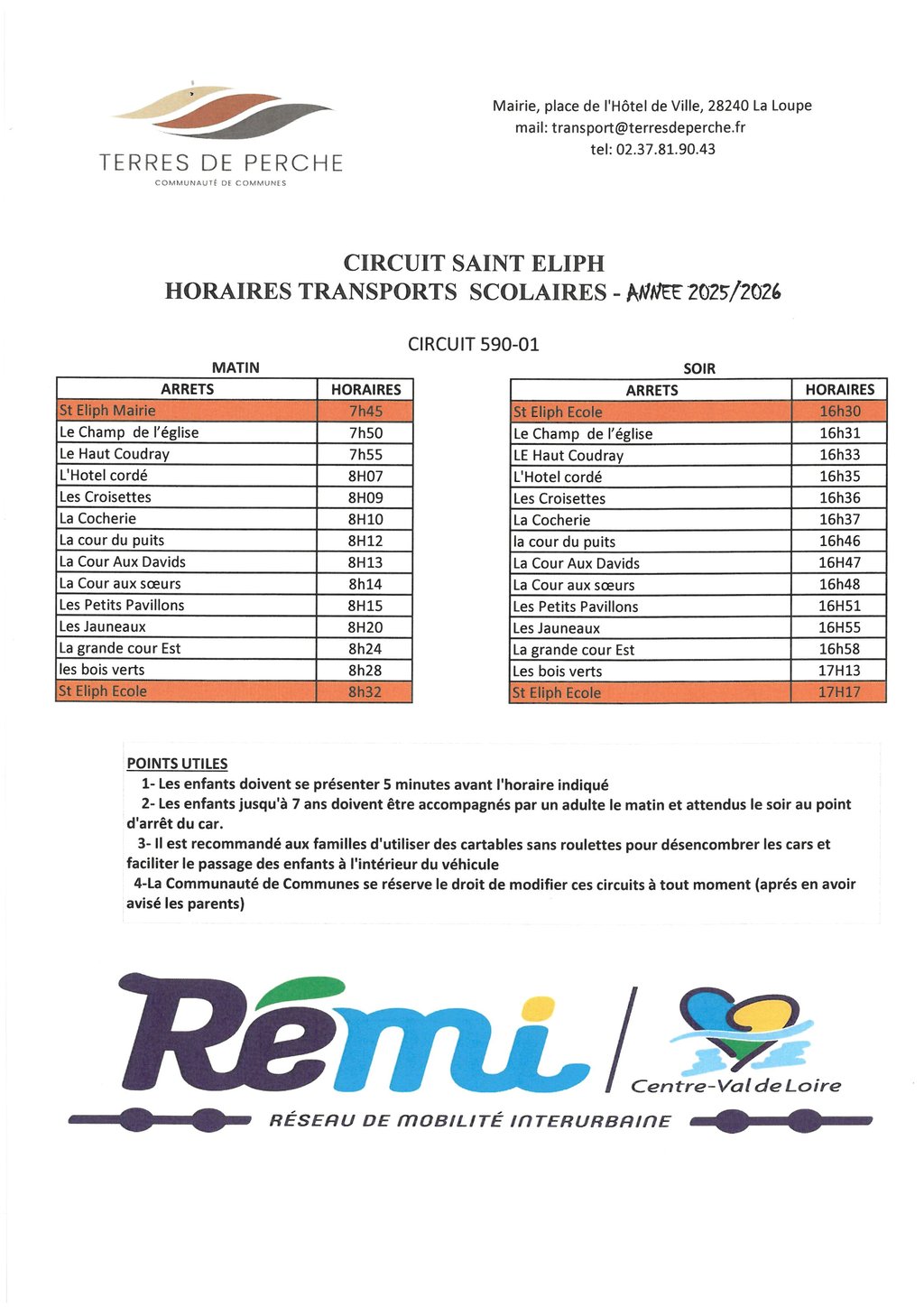 HORAIRES TRANSPORTS SCOLAIRES