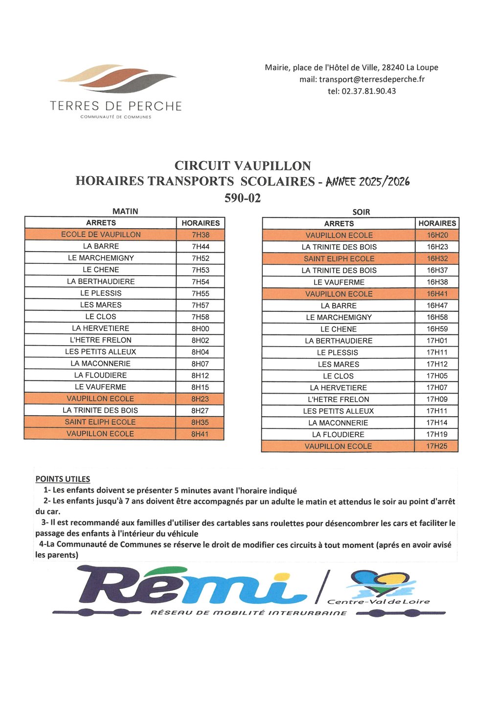 Veuillez trouver ci-joint les horaires pour les transports scolaires de la rentrée 2025/2026.