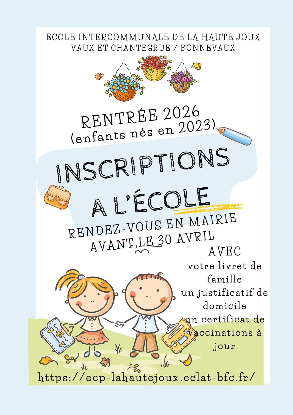 RENTRÉE 2026 : INSCRIPTION SCOLAIRE ÉCOLE PRIMAIRE INTERCOMMUNALE DE LA HAUTE JOUX