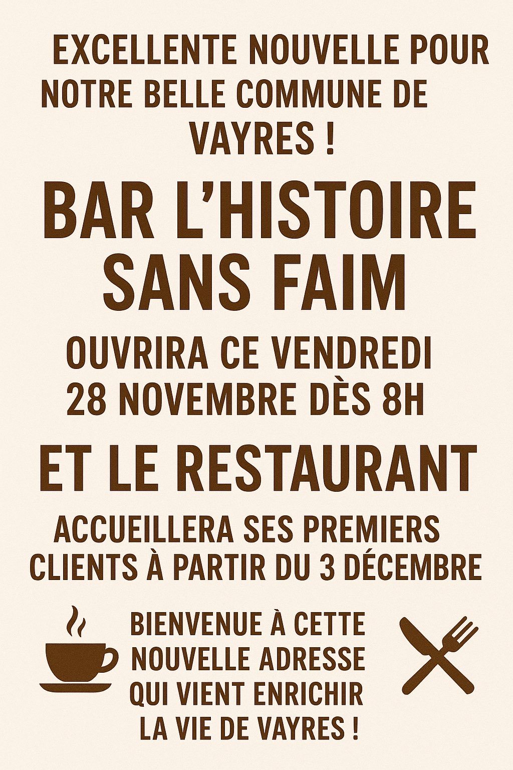 OUVERTURE DU BAR L'HISTOIRE SANS FAIM