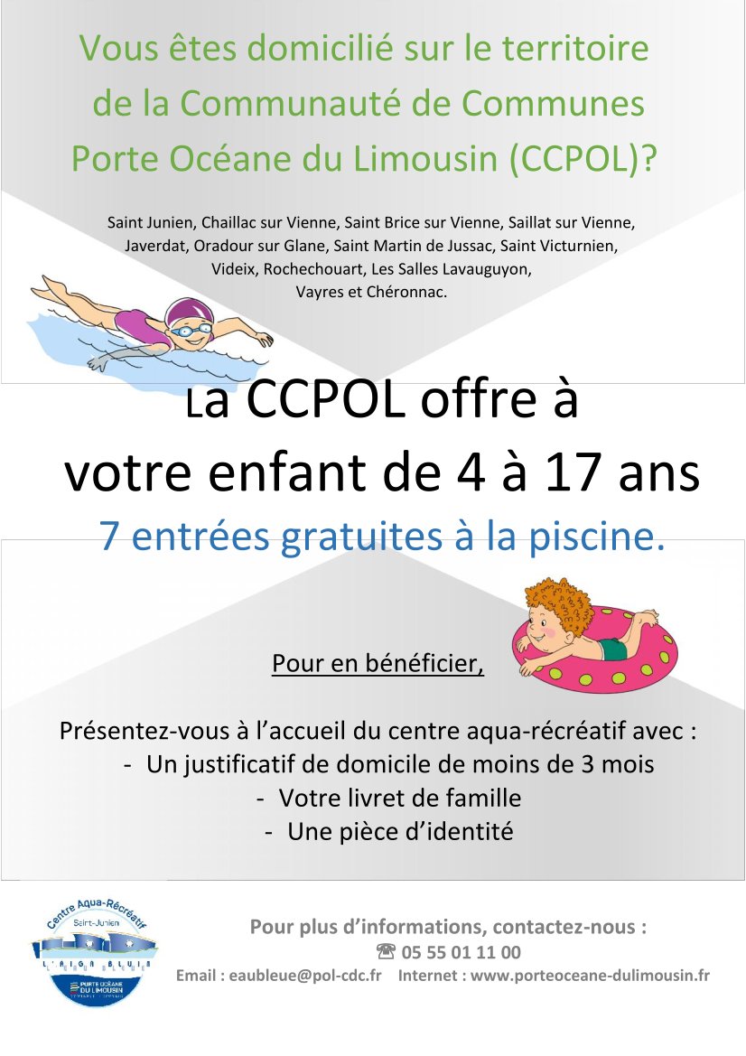 La CC POL offre à votre enfant de 4 à 17 ans 7 entrées gratuites à la pisicine.