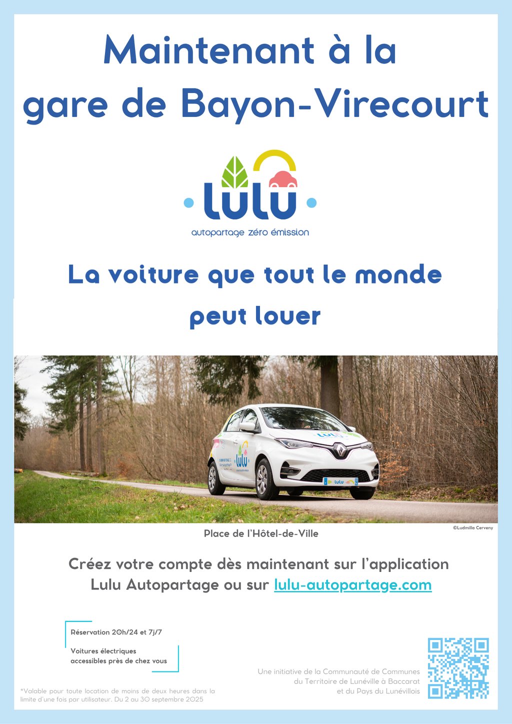 UNE DEUXIÈME LULU AUTOPARTAGE EST DISPONIBLE À LA GARE DE BAYON-VIRECOURT !