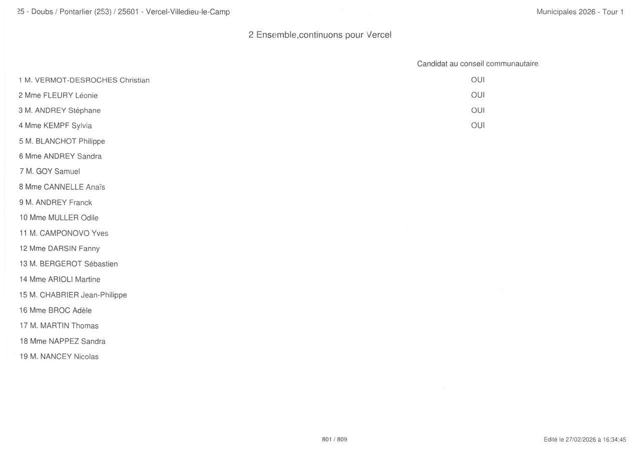 Elections Municipales à Vercel-Villedieu-le-Camp