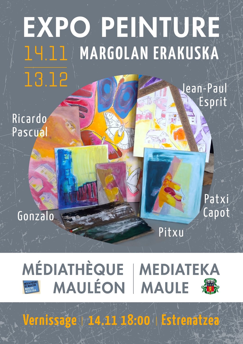 La médiathèque de Mauléon a le plaisir de vous inviter au vernissage de l'exposition de cinq artistes locaux qui seront présents :