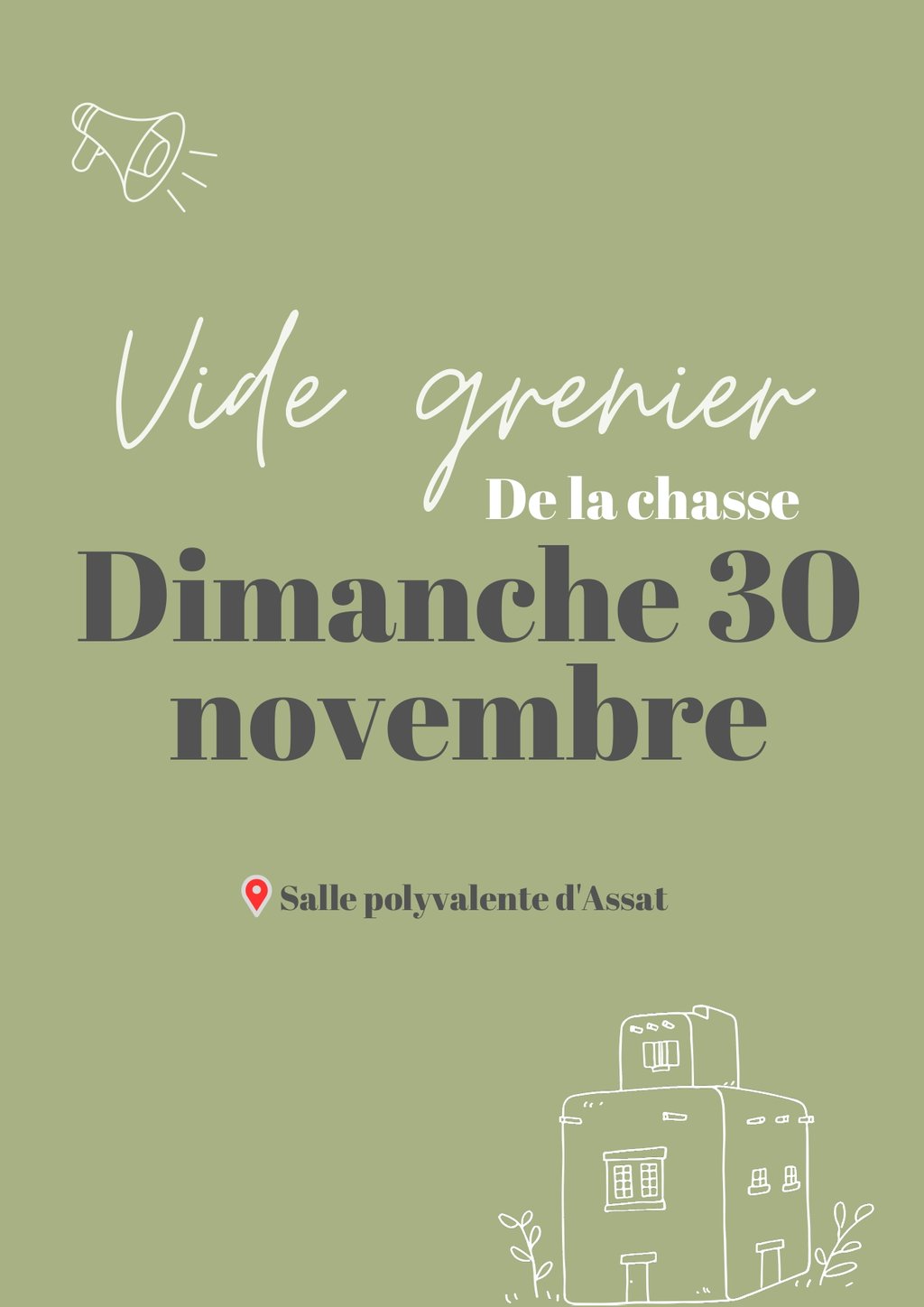 L’ACCA d’Assat organise son vide grenier annuel le 27 novembre de 8h à 17h à la salle polyvalente d’Assat.