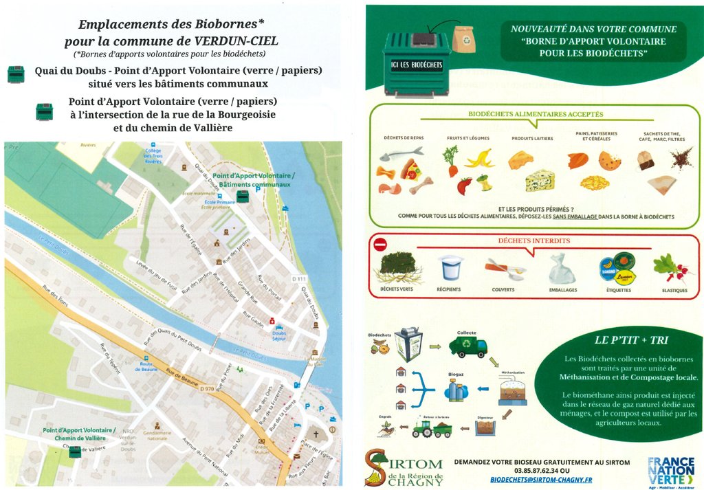 * Quai du Doubs - point apport volontaire (verre/papier) situé vers les bâtiments communaux secteur Verdun-Sur-Le-Doubs