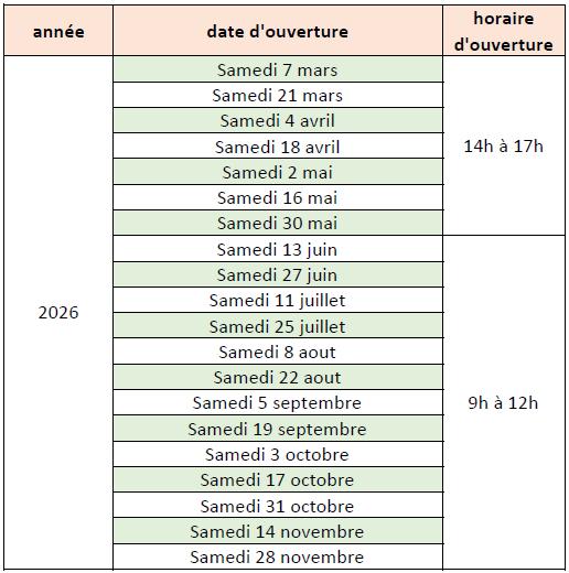 Ci-dessous les dates d'ouvertures du dépôt de déchets verts pour 2026