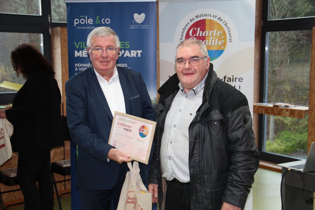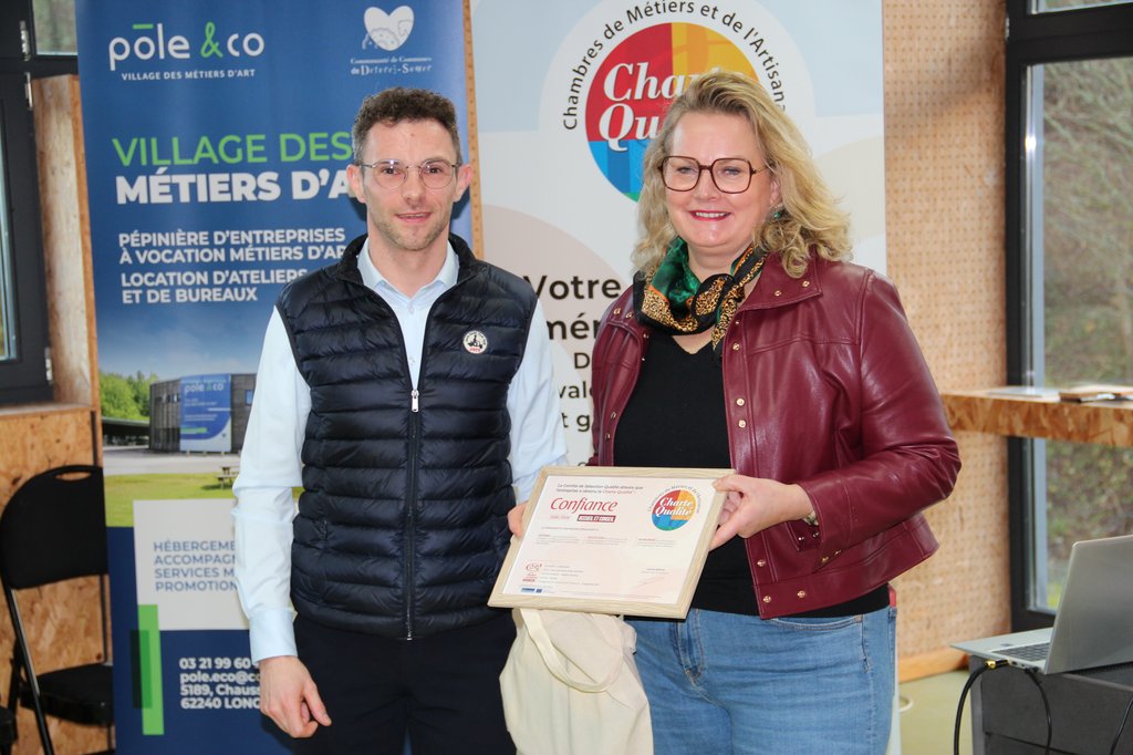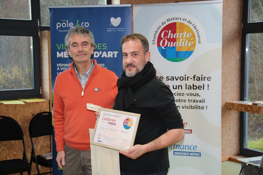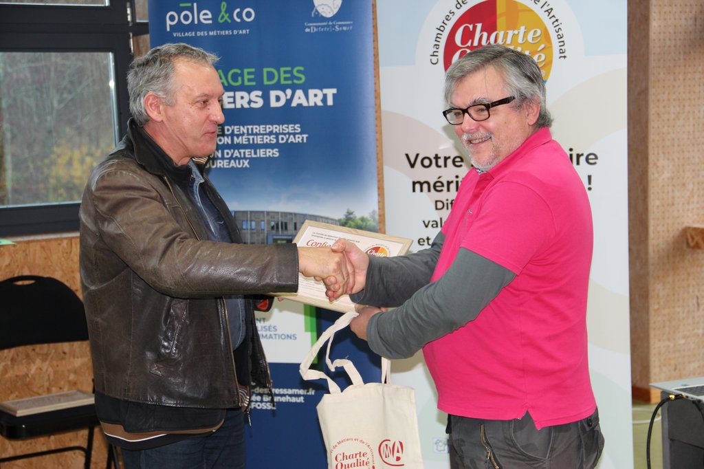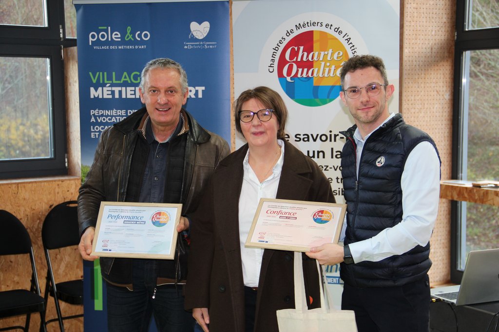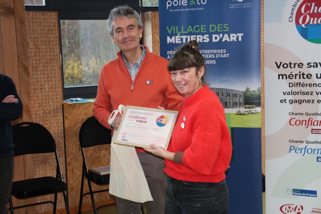 Ce jeudi 11 décembre, plusieurs artisans du territoire ont reçu la Charte Qualité® de la Chambre de Métiers et de l’artisanat au Village des Métiers d'art de Desvres - VMAD), en présence d’élus de la CMA et de la CCDS.