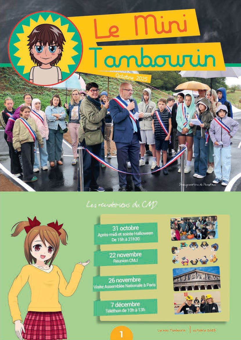 LE TAMBOURINAIRE et le MINI TAMBOURIN de OCTOBRE 2025 sont en avant-première sur le site internet de la commune, l'application INTRAMUROS et l'écran d'accueil de la mairie.