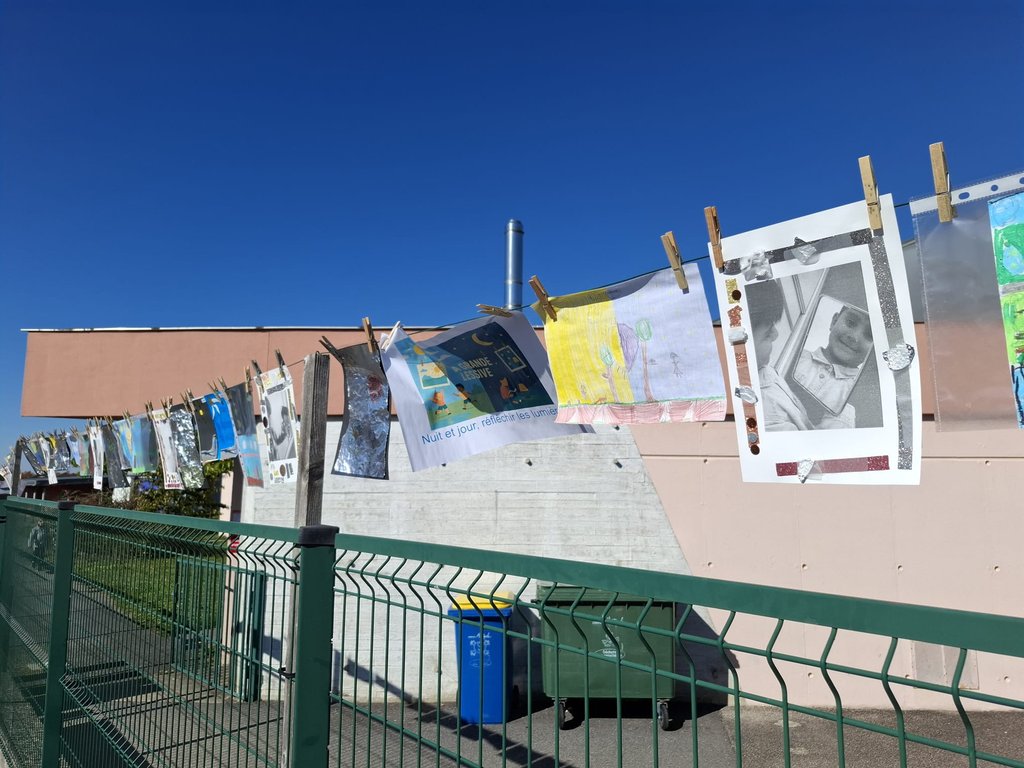 Jeudi 16 octobre 2025, les élèves de l’école élémentaire Thomas Pesquet de Verneuil-sur-Vienne ont participé à la 38e édition de La Grande Lessive®, une installation artistique éphémère et participative créée par la plasticienne Joëlle Gonthier.