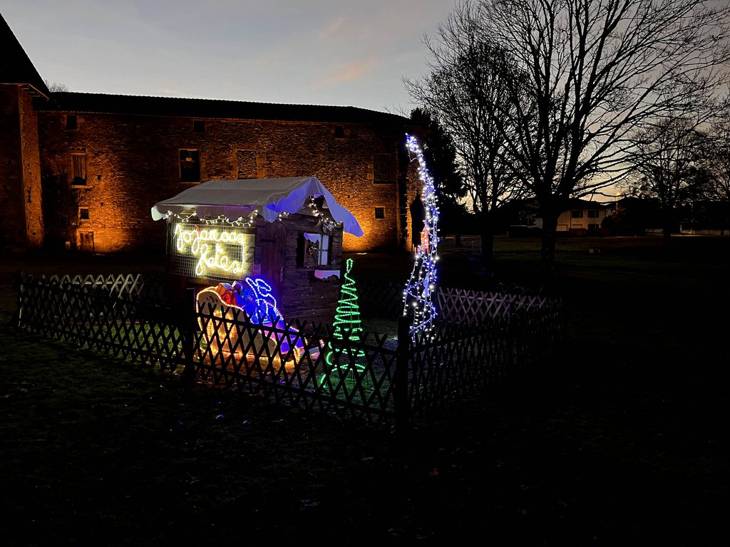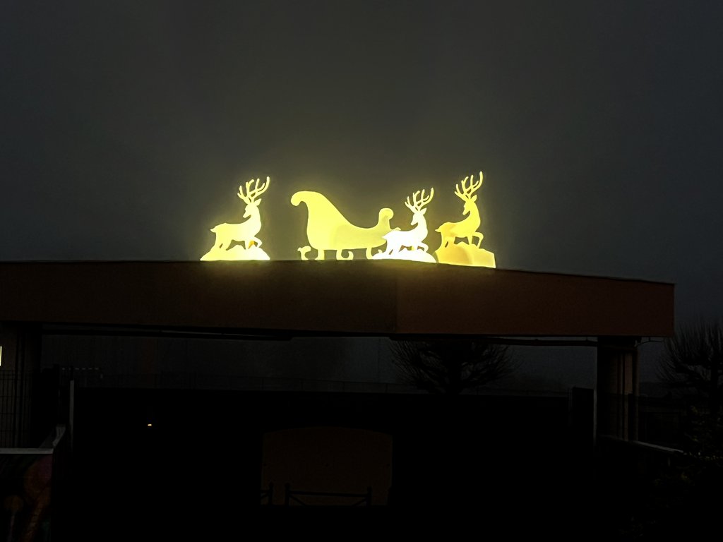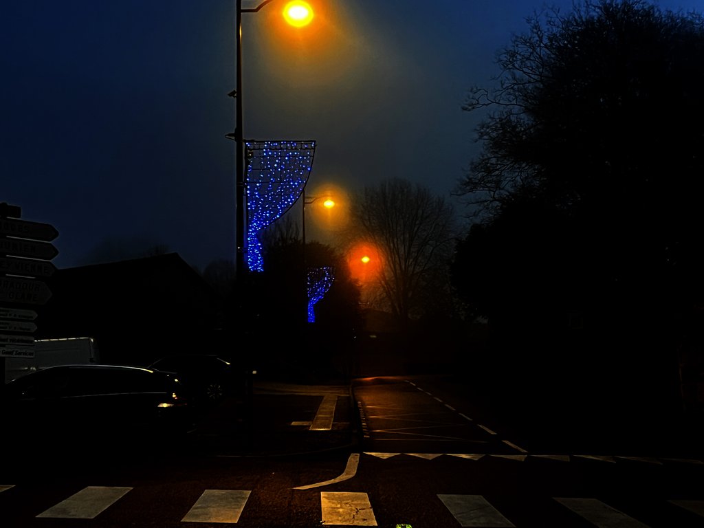 17h sonne, et comme chaque soir en décembre, la nuit se déploie lentement au-dessus de Verneuil. Mais aujourd’hui, quelque chose a changé : des lueurs apparaissent dans les rues du bourg. Une, puis deux… En un éclair, Verneuil s’illumine. Rue de Limoges, rue du Civoir, les décorations se mettent à scintiller, comme si elles chuchotaient entre elles. Le Père Noël lui-même a fait une halte discrète à l’école élémentaire. Il a posé son traîneau — un vrai, avec ses rennes encore couverts de givre du Nord — juste le temps de recueillir les précieuses lettres déposées dans sa boîte aux lettres rouge et blanche, devant l’ALSH.