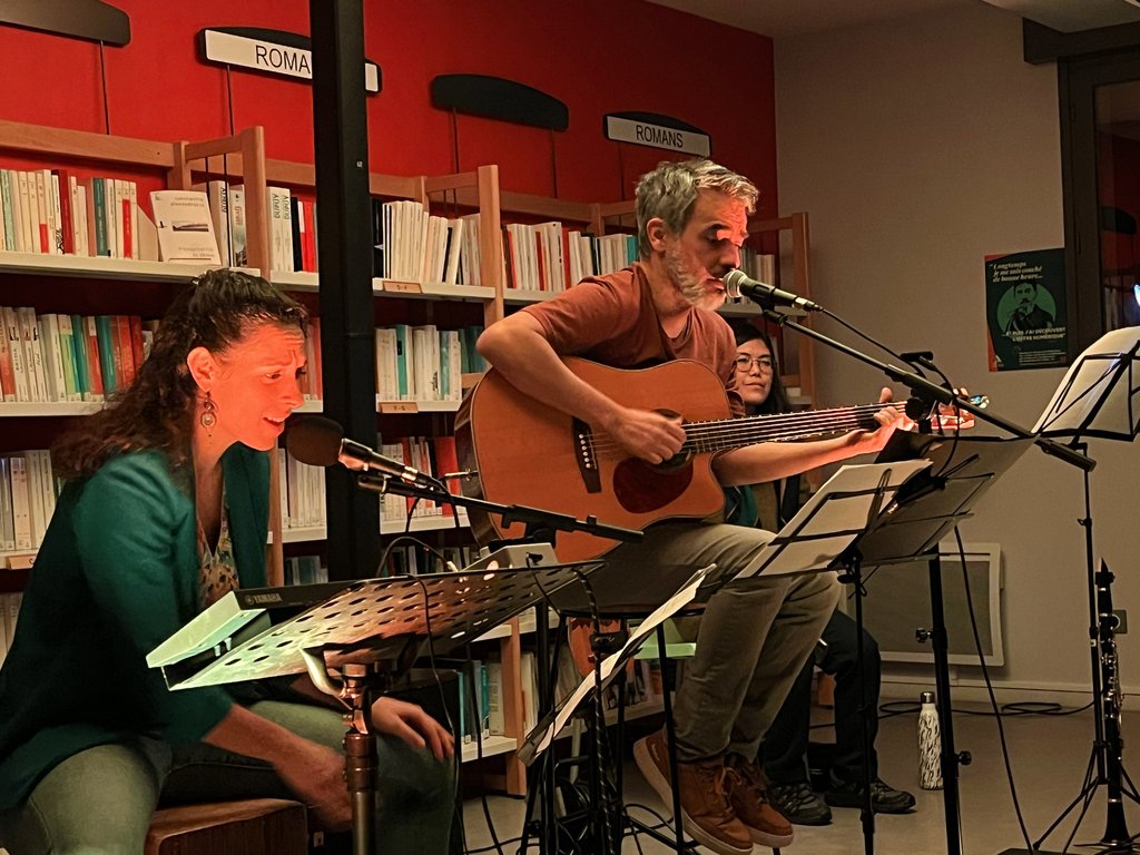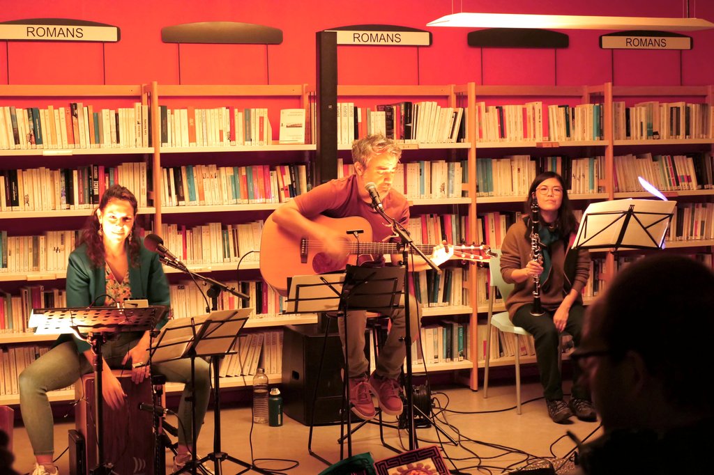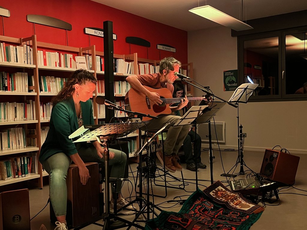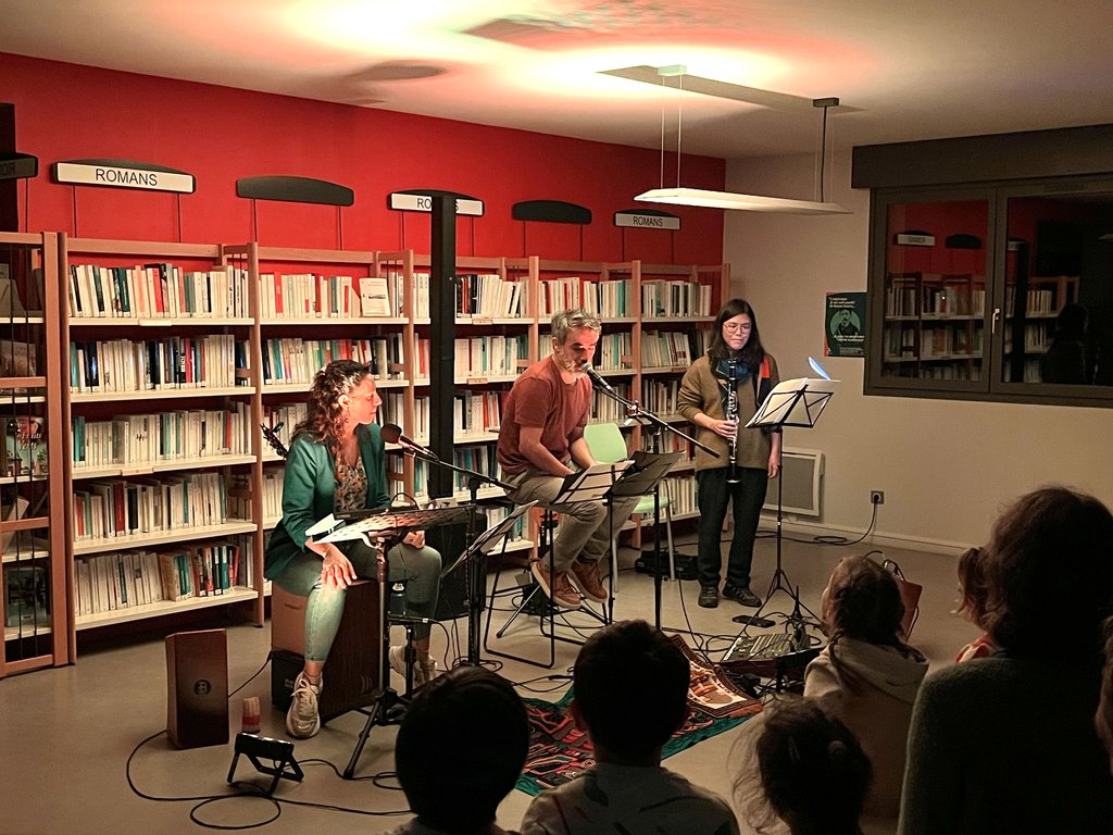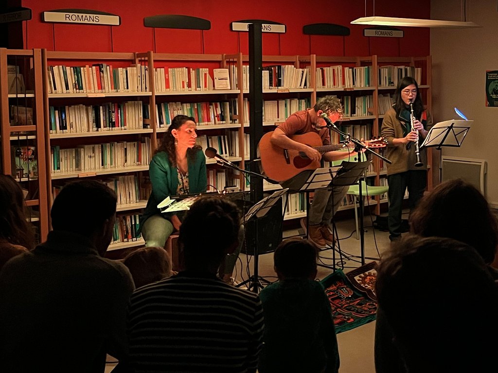 Vendredi soir, Nazcan a investi la médiathèque Les Troubadours de Verneuil sur Vienne. Constitué par le trio — François : aux arrangements, à la guitare et au chant, Céline aux percussions et Yuka à la clarinette — ont raconté en chanson, le périple d’Inti, personnage mythique mi-extraterrestre, mi-péruvien, en quête de ses origines.