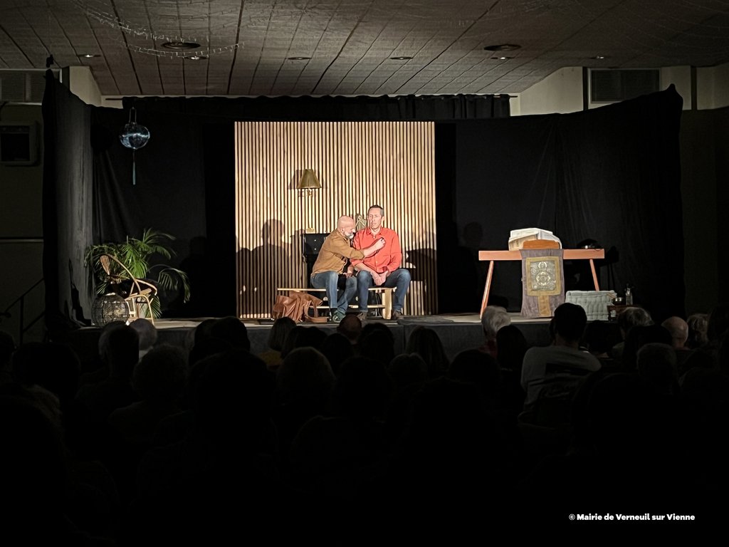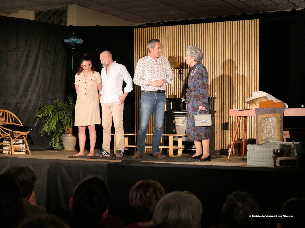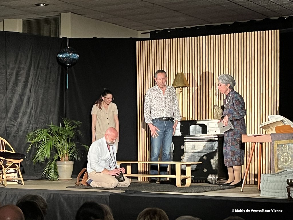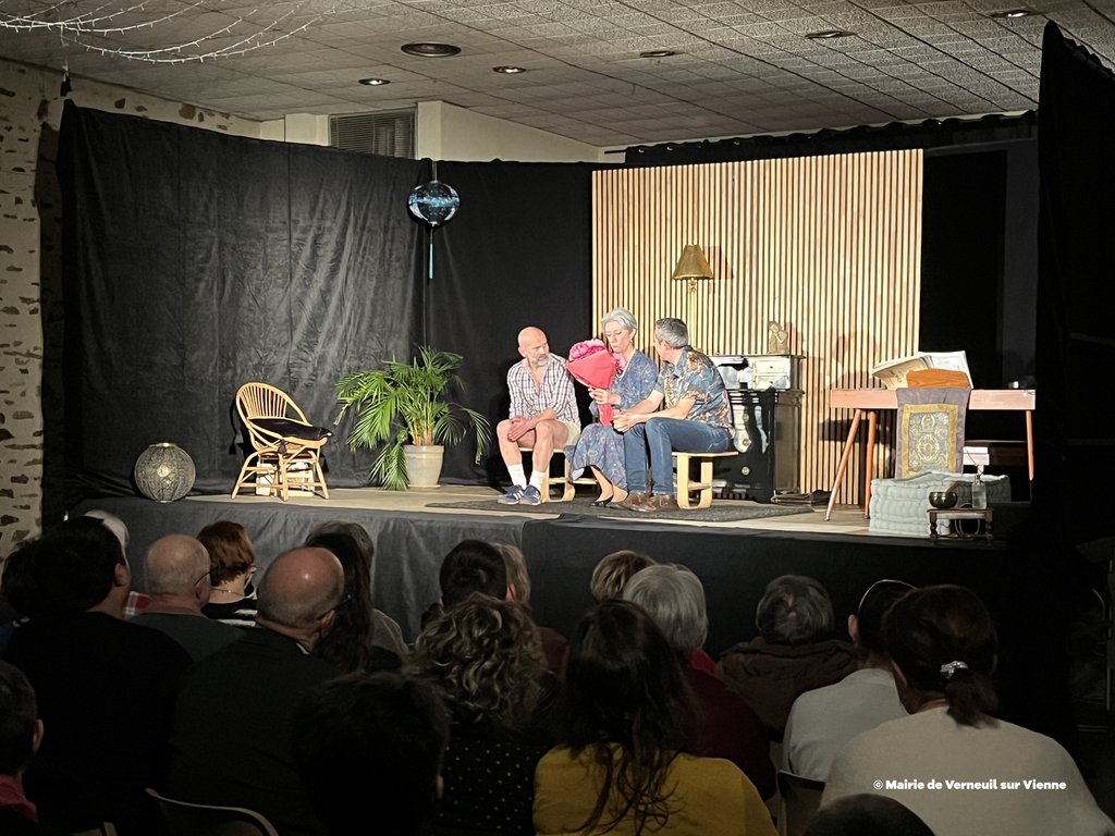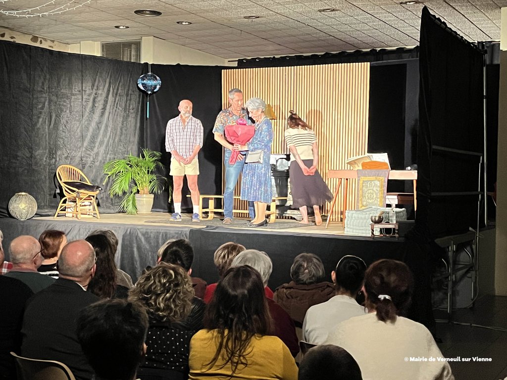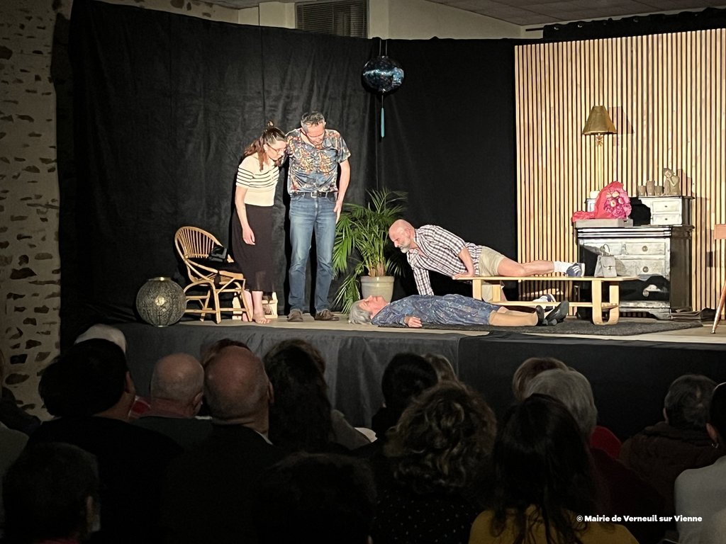 Vendredi 6 février dernier, la municipalité de Verneuil-sur-Vienne a proposé une soirée théâtre avec la troupe du Grenier à Sel d’Aixe-sur-Vienne avec la pièce "L’origine du monde" de Sébastien Thiéry, mise en scène et direction d'acteurs : Ségolène Mathaud, Laurent Dumasdelage, interprétée par Lili Botter, Marie-Christine Nicaud-Blanchon, Ségolène Mathaud, Rémy Pauliat, Laurent Dumasdelage.