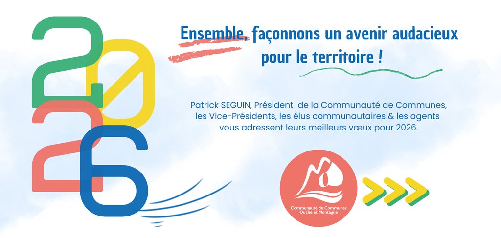 Patrick SEGUIN, Président de la Communauté de Communes Ouche et Montagne, les Vice-Présidents, les élus communautaires et les agents vous adressent leurs meilleurs vœux pour 2026.