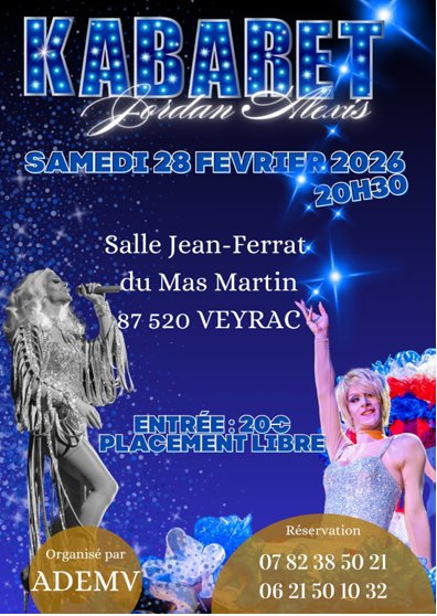 L'Amicale des Anciens Élus Municipaux de Veyrac organise un Kabaret samedi 28 février 2026, à 20h30, Salle Jean Ferrat, 𝐚𝐮 𝐌𝐚𝐬 𝐌𝐚𝐫𝐭𝐢𝐧 !