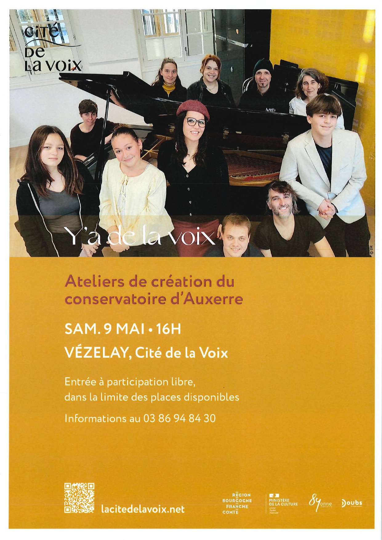 Y’a de la voix est un projet de création de chansons de langue française, de la « page blanche jusqu’à la scène » proposé par le Conservatoire à rayonnement départemental de l’Auxerrois qui donne l’opportunité à des amateurs entre 13 et 55 ans d’expérimenter l’écriture et l’interprétation d’une chanson sur scène.