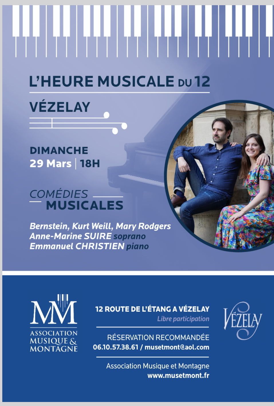 comédies musicales. Oeuvres de Bernstein, Kurt Weill, Mary Rodgers. Pianiste et soprano