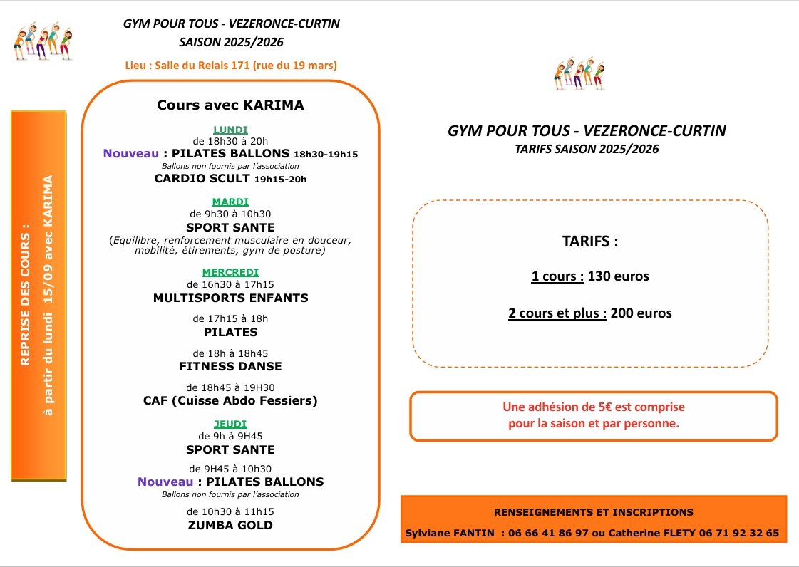 Les cours reprennent à partir du lundi 15 septembre avec Karima à la salle du Relais 171.