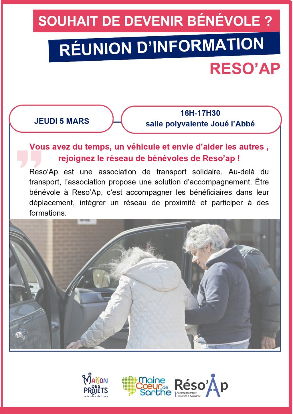 Réunion publique pour recruter des bénévoles et identifier des bénéficiaires : rendez-vous le jeudi 5 mars 2026 à 16 h, à la salle polyvalente de Joué-l'Abbé.