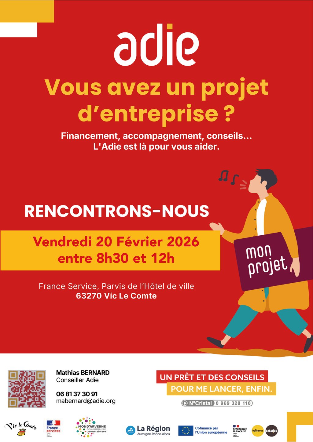 Mathias Bernard saura répondre à vos questions et vous accompagner dans vos démarches grâce à l'association ADIE et ses permanences dans les locaux de France Services Vic-le-Comte le 3ème vendredi de chaque mois !