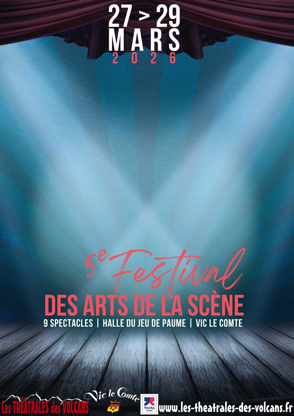 Pour la cinquième année consécutive, le festival Les théâtrales des volcans se tiendra du 27 au 29 mars à la Halle du Jeu de Paume de Vic-le-Comte. 9 spectacles répartis sur 3 jours, tous les styles, tous les âges. Plus de renseignements et réservations sur notre site.
