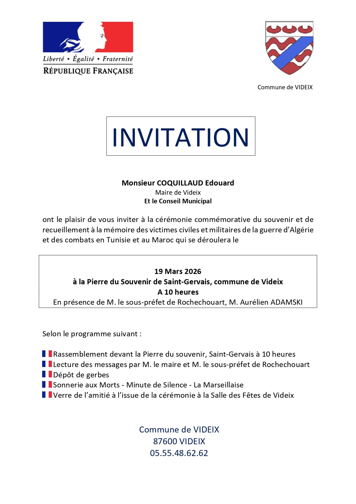 19 Mars 2026, à 10 heures à la Pierre du Souvenir de Saint-Gervais, commune de Videix