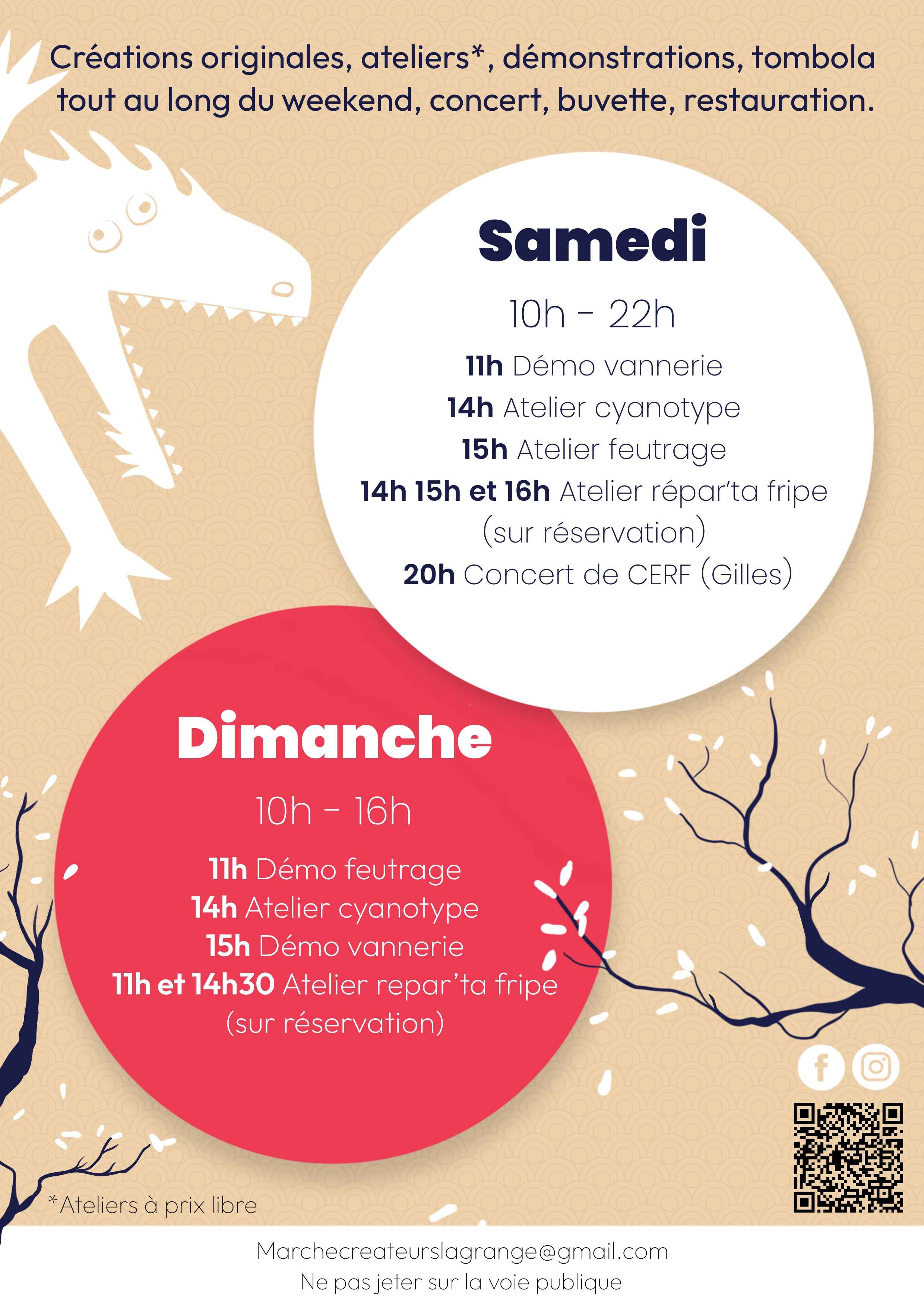 CREATIONS ORIGINALES, ATELIERS, DÉMONSTRATIONS, TOMBOLA, CONCERT,BUVETTE,RESTAURATION