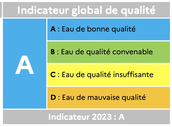 - 	Conforme aux limites réglementaires pour les paramètres bactériologiques et physicochimiques.