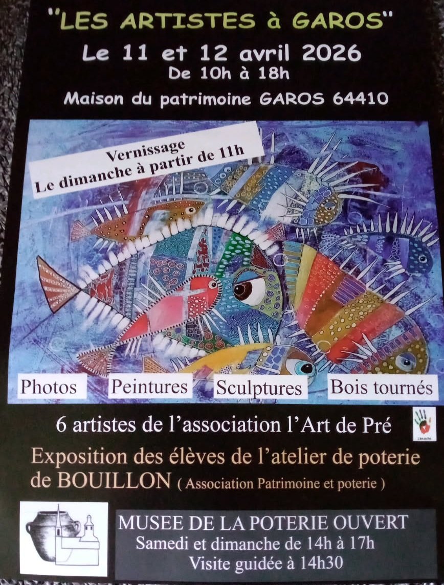 Exposition des 6 artistes de l association L'art de pré, vernissage, visite guidée du musée de la poterie.