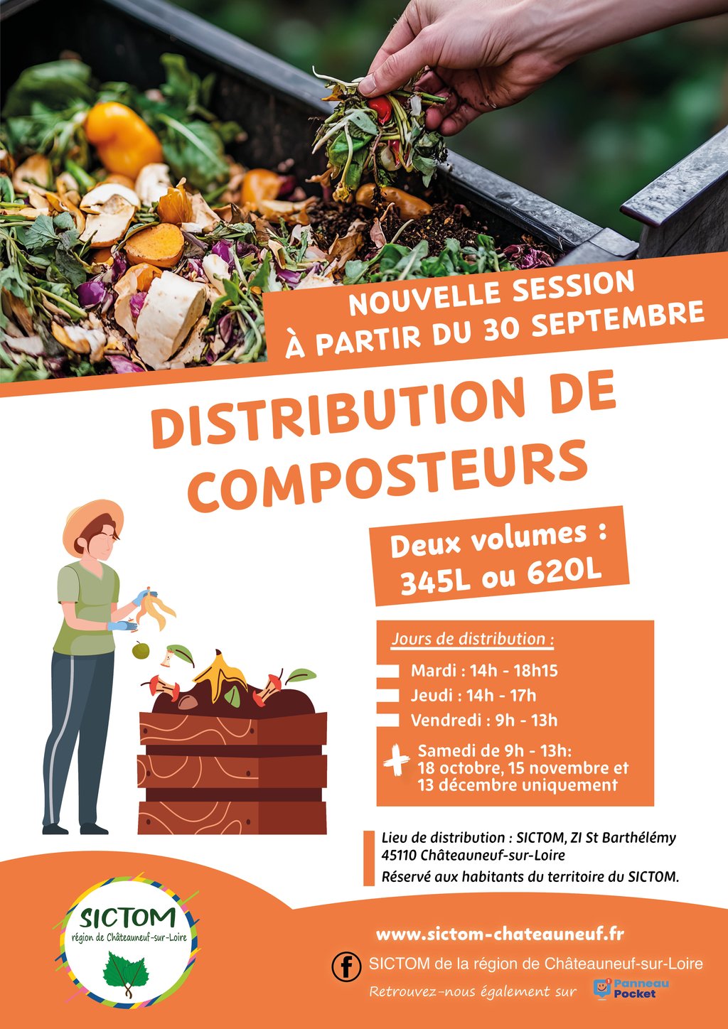 La distribution de composteurs reprend au SICTOM de la rรฉgion de Chรขteauneuf-sur-Loire dรจs le Mardi 30 septembre ๐ Et cโest gratuit !