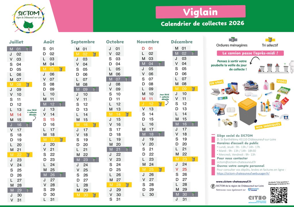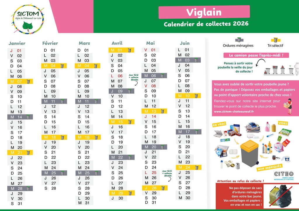 www.sictom-chateauneuf.fr - Calendrier de collectes 2026
