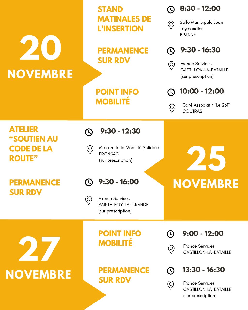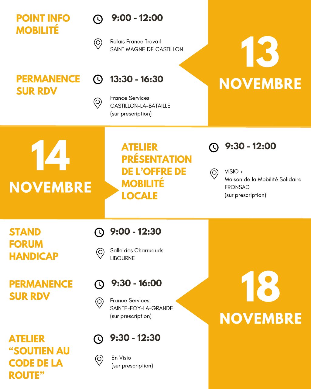 PLATEFORME DE LA MOBILITE : PLANNING NOVEMBRE