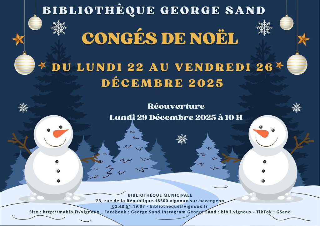 Votre bibliothèque fête Noël et prend ses congés du lundi 22 au vendredi 26 décembre 2025.