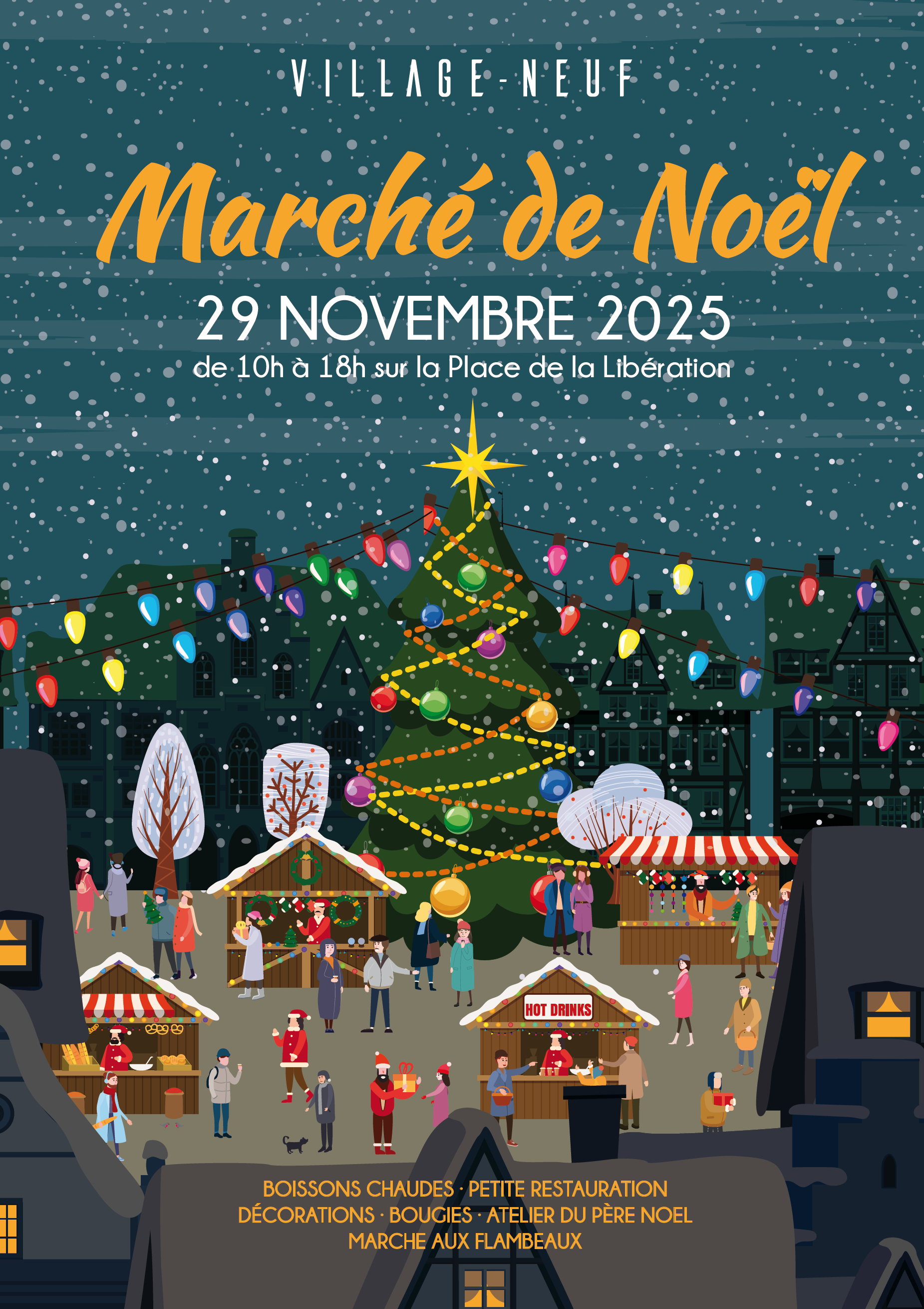 Les associations de Village-Neuf et de nombreux artisans locaux vous invitent à plonger dans la magie de Noël lors de leur chaleureux marché ! Venez découvrir une grande variété de stands : gâteaux de Noël, confitures maison, bijoux artisanaux, décorations et objets de Noël, couture et tricot faits main, objets en bois, cartes de vœux, bières artisanales… Vous y trouverez de nombreuses idées cadeaux originales et authentiques.Ne manquez pas l’Atelier du Père Noël, où petits et grands pourront s’émerveiller devant la fabrication d’objets en bois et de jolis bricolages ! Côté gourmandises, régalez-vous avec du vin chaud, de la soupe, des crêpes, des manalas et bien d’autres spécialités savoureuses. Et pour clôturer cette belle journée, participez à la marche aux flambeaux, organisée par l’association Trait Convivial et le Club Vosgien de Village-Neuf – une promenade magique à travers les rues du village.