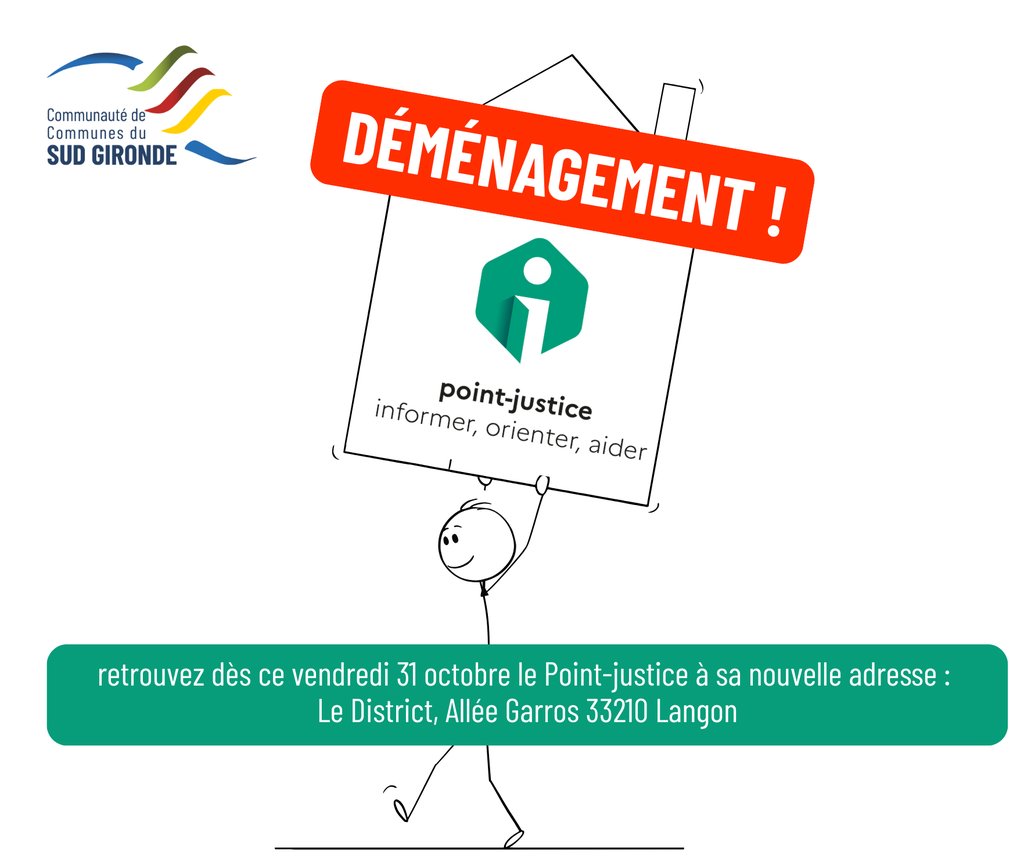 📍 À compter du lundi 3 novembre, le Point Justice se situera au 13 allées Garros à Langon.