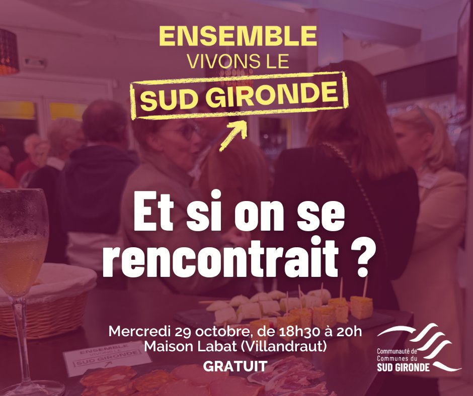 Vous aimez le Sud-Gironde et avez envie de rencontrer du monde, partager vos idĂ©es, dĂ©couvrir des projets inspirants ou simplement passer un bon moment autour dâun verre ? Cet apĂ©ro-accueil est fait pour vous !