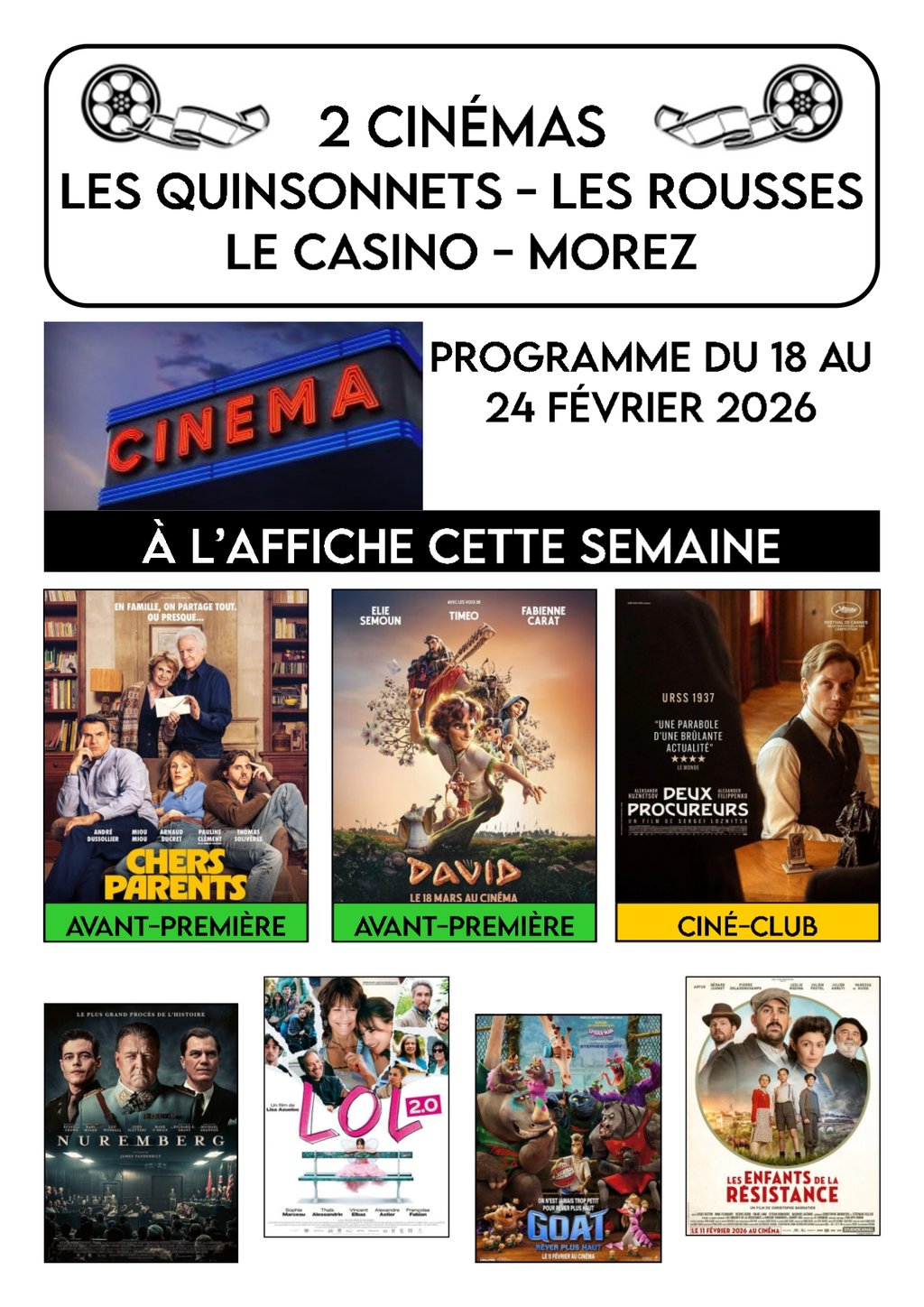 Programme Cinéma Morez/Les Rousses du 18 au 24 fevrier 2026