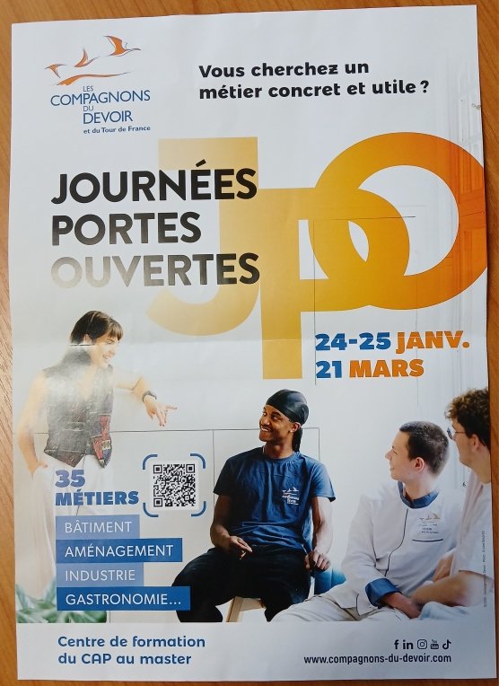 Vous trouverez en pièces jointes une information sur les journées portes ouvertes des "Compagnons du Devoir et du tour de France". Cette association assure la formation des jeunes en alternance avec un programme de mobilité internationale Erasmus.