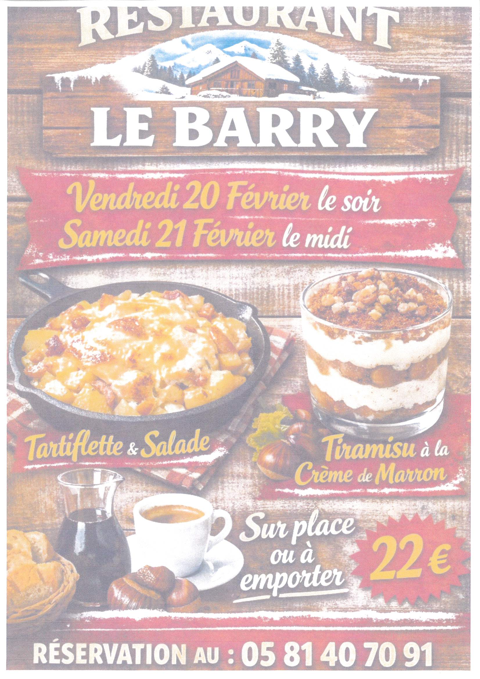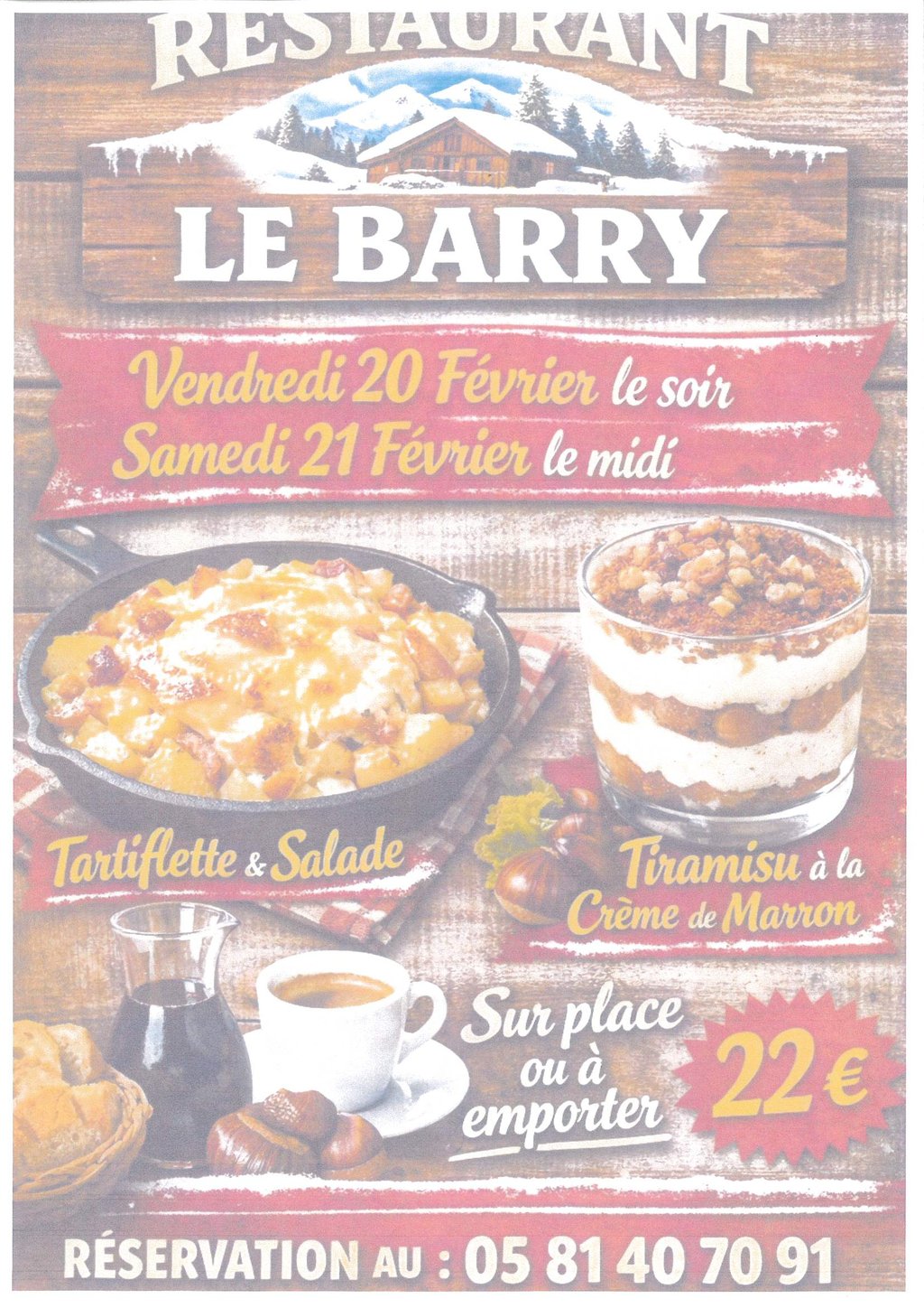 Pensez à réserver au 05.81.40.70.91