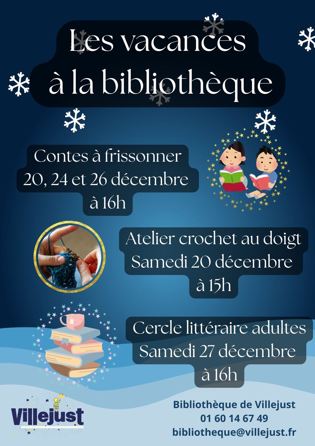 Découvrez l'agenda de la bibliothèque de Villejust pour les vacances de Noël 🎅